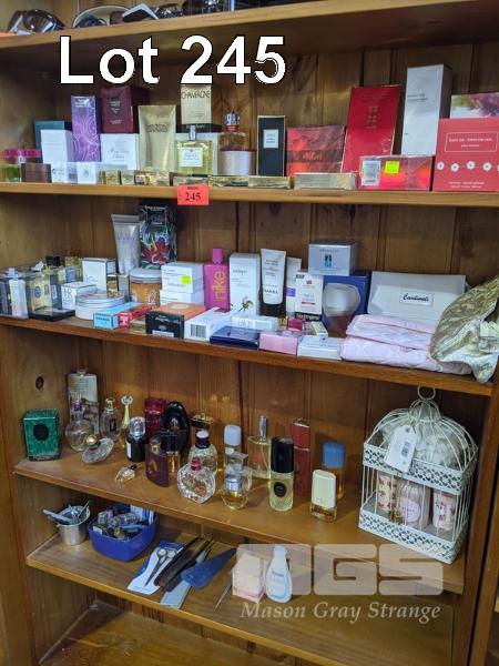 ASSORTED PERFUMES & COSMETICS INC CHANEL, YVES SAINT LAURENT, ETC, 4 x SHELVES