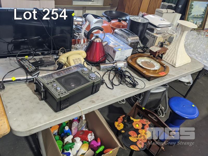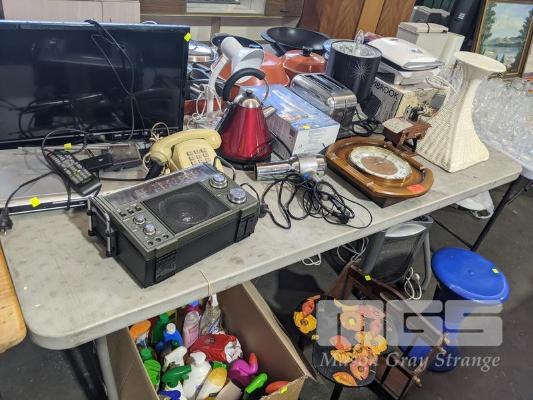 DSE MULTIBAND RECEIVER, ETC, CLEANING AGENTS, ETC, 1 x TABLE, 1 x BOX & FLOOR UNDER TABLE