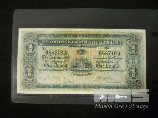 1913 1 POUND NOTE COLLINS ALLEN 1ST AUST 1 POUND GREAT NOTE