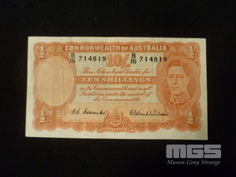 1952 10 SHILLING NOTE COOMBS WILSON APPEARS HIGH GRADE