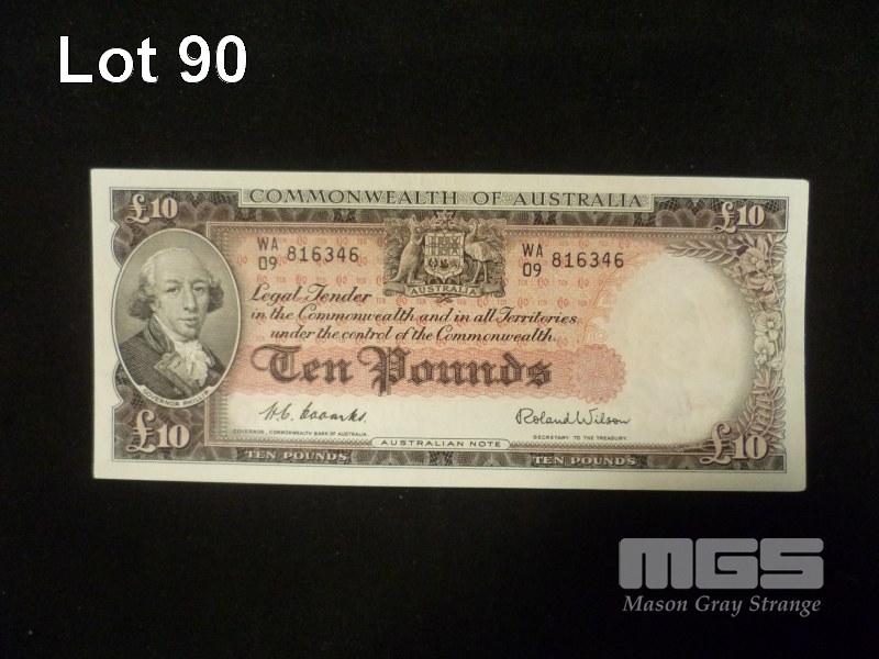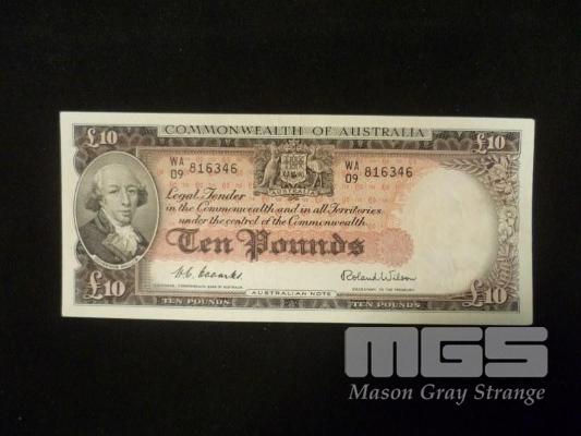1954 10 POUND AUSTRALIAN NOTE COOMBS WILSON APPEARS UNC
