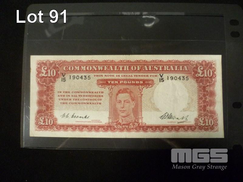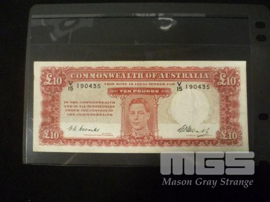 1949 10 POUND NOTE "V15" 1ST PREFIX COOMBS WATT NICE GRADE