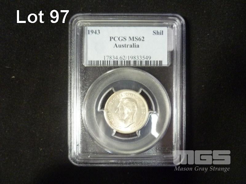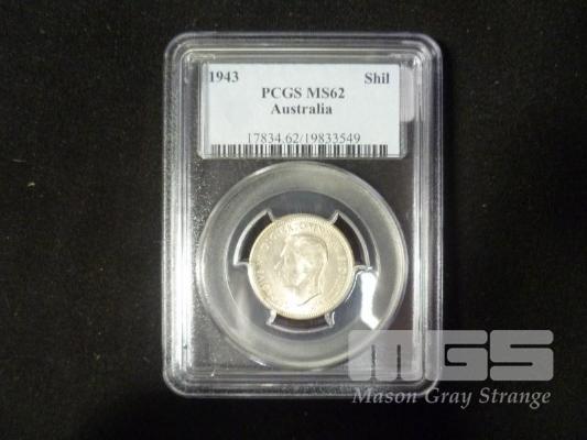 1943 SHILLING AUSTRALIAN GRADED MS62 UNC