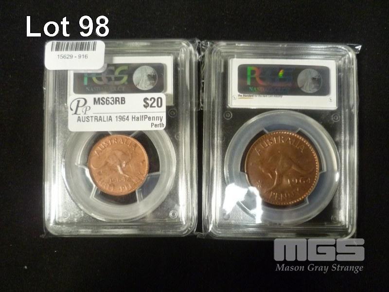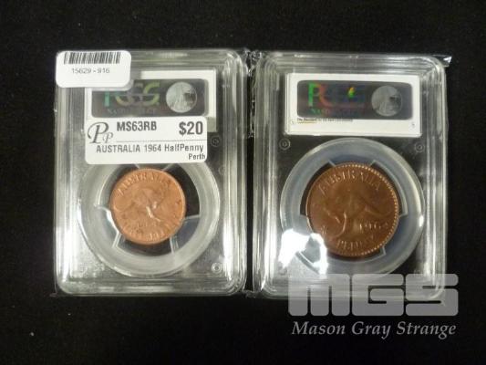 1964 HALF PENNY + PENNY GRADED MS63 CHOICE UNC