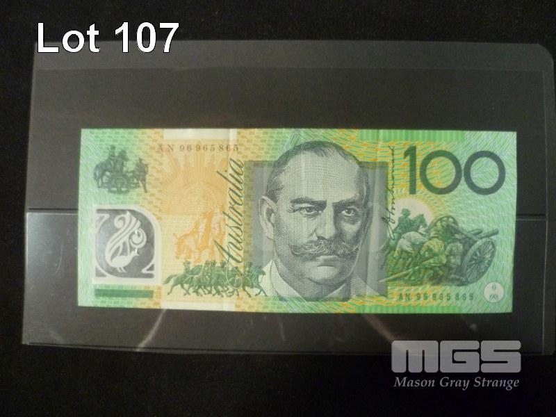 1996 100 DOLLAR NOTE TEST NOTE 1ST PREFIX "AN96"