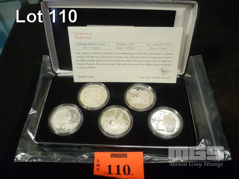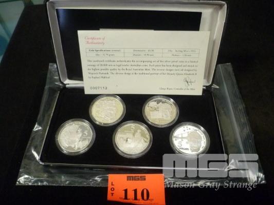 1995 MASTERPIECES IN SILVER, 5 x 35.79gm STERLING SILVER COINS (169gms)