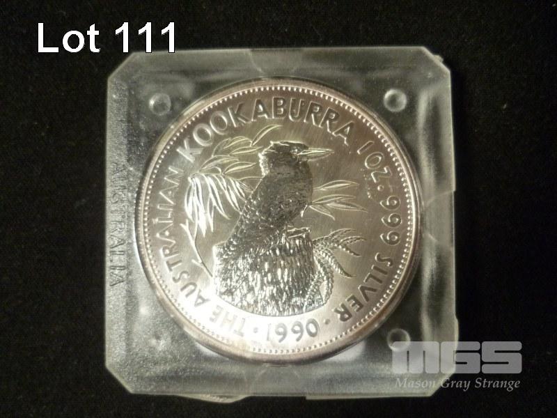 1990 5 DOLLAR 999 1OZ SILVER KOOKABURRA UNC COIN