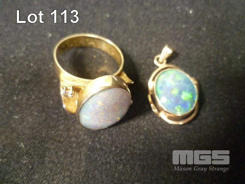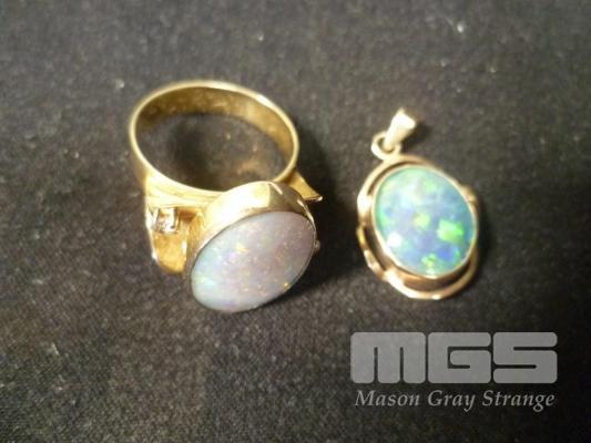 GOLD RING & PENDANT SET WITH OPAL DOUBLETS, MARKED 9c, TOTAL WEIGHT 9.12gm