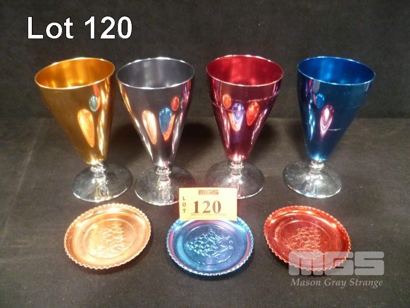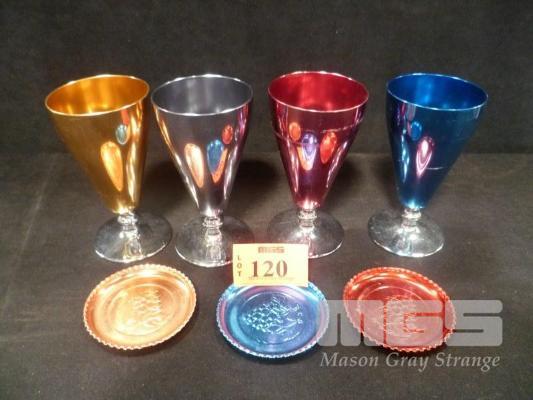 SET 6 ANODIZED GOBLETS WITH 3 x ANODIZED COASTERS