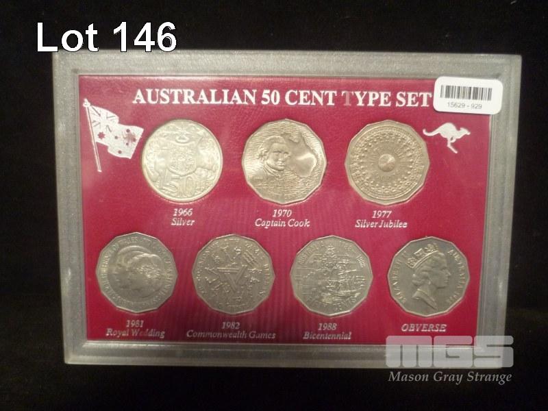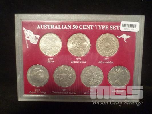 AUSTRALIAN 50 UNC 7 COIN SET INCLUDES ROUND 50 CENT