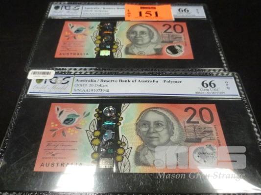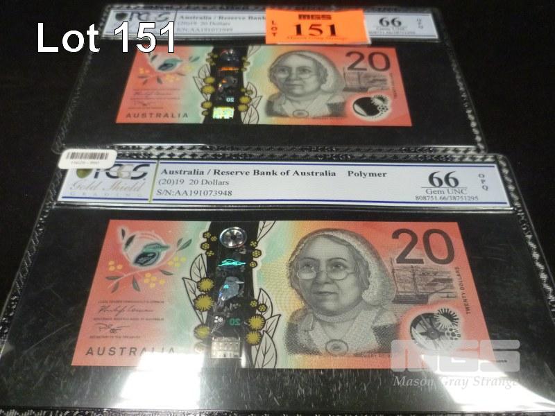 2019 FIRST PREFIX CONSECUTIVE $20.00 NOTE "AA19" GEM 66 UNC