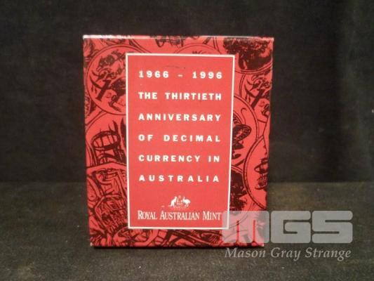 1996 PROOF 1 TROY OZ FINE SILVER " 3OTH ANNIV OF DECIMAL COINS" IN BOX