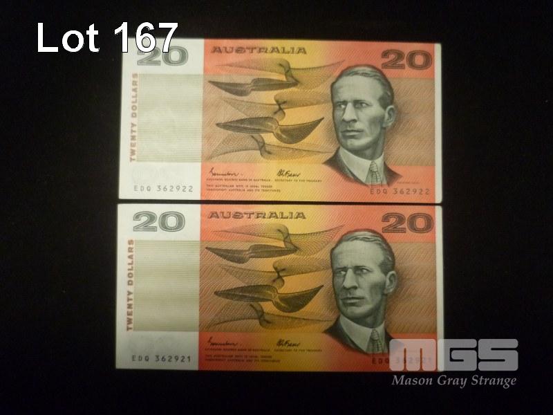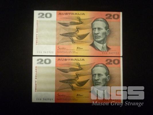 1985 2 X 20 DOLLAR NOTE CONSECUTIVE JOHNSTON FRAZER NICE GRADE