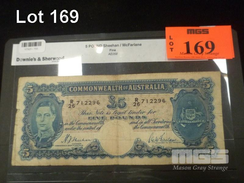 COMMONWEALTH OF AUSTRALIA, FIVE POUNDS, BANKNOTE, SHEEHAN/McFARLANE, R26 712296 FINE