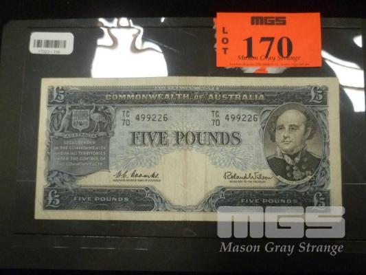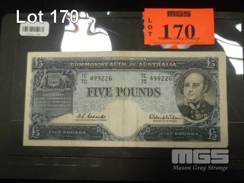 COMMONWEALTH OF AUSTRALIA, FIVE POUNDS, BANKNOTE, COOMBS/WILSON, TC70 499226