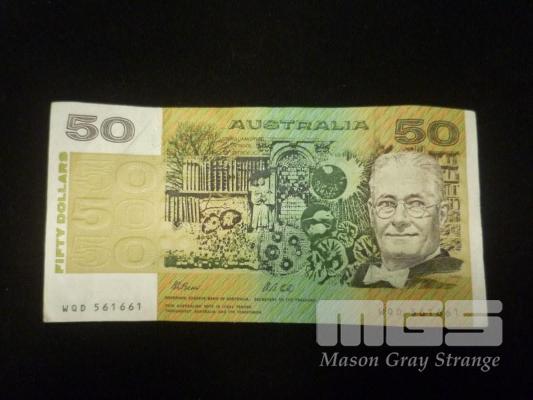 AUSTRALIA, $50 PAPER BANKNOTE, FRASER/COLE, WQD 561661