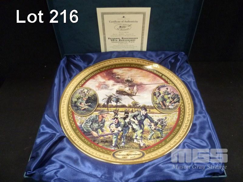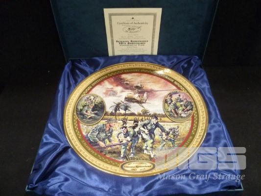 BRADFORD EXCHANGE COMMEMORATIVE PLATE, VETERANS REMEMBERED 50TH ANNIVERSARY, NUMBER 110 OF 1,941, WITH COA IN DISPLAY BOX