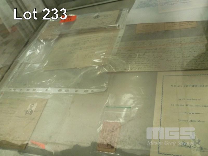 ASSORTED MILITARY EPHEMERA, RAAF PILOT I.D CARD, MEDICAL CLEARANCE CERTIFICATE, MESS MENU, LEAVE PASSES ETC MAINLY RELATED TO R.W TIDSWELL