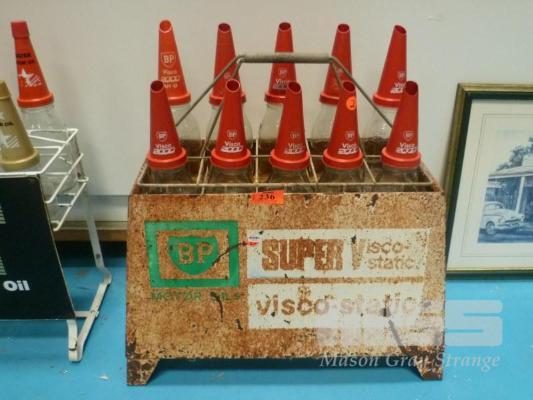 BP VISCO 10 x OIL BOTTLES, RACK & STAND