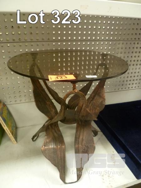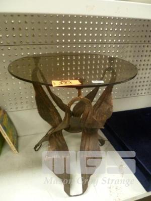 ROUND OCCASIONAL TABLE, GLASS TOP, BRONZE BASE