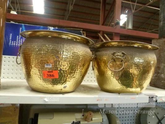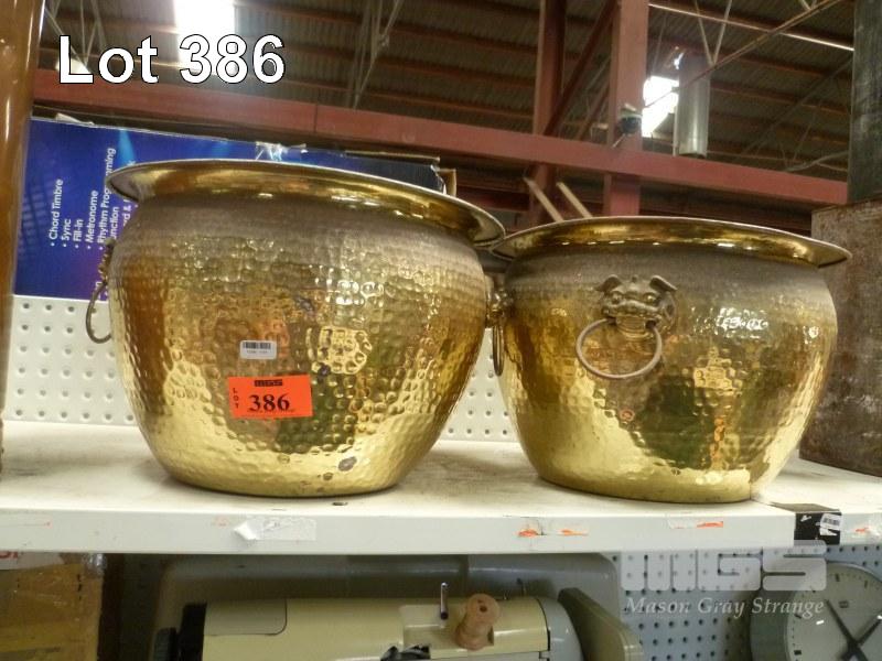 PAIR BRASS POTS WITH MEDIEVAL HANDLES