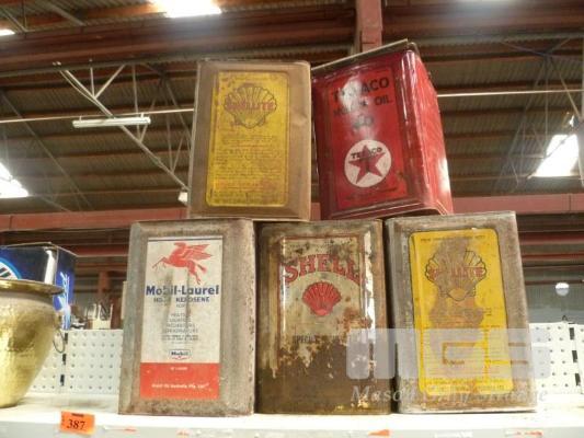 5 x OIL DRUMS INCLUDING TEXACO, SHELL & MOBIL