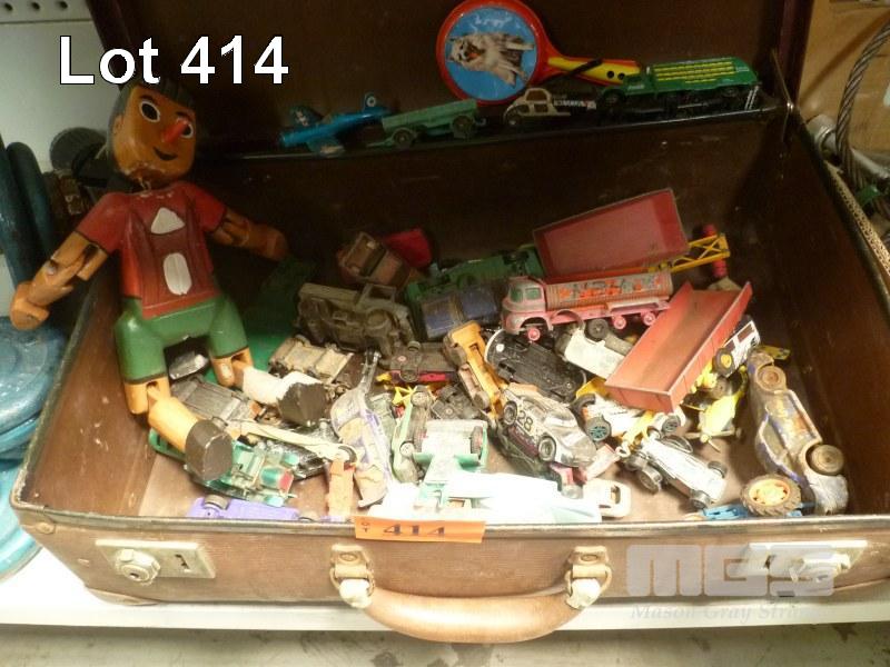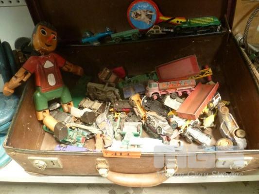 SUITCASE FULL WITH DIE-CAST CARS & VINTAGE TOYS