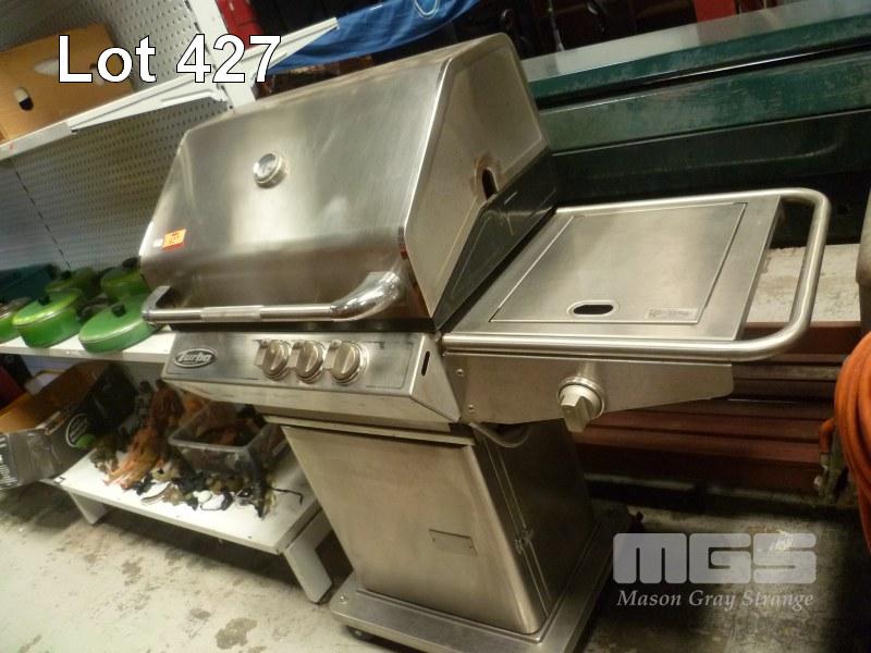 TURBO 3 BURNER BBQ, STAINLESS STEEL (LEFT SHELF MISSING)