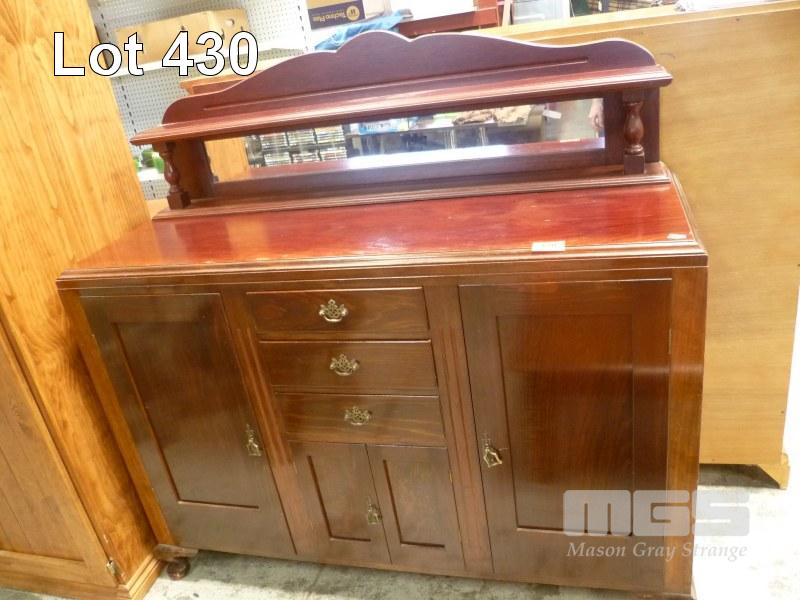 POLISHED TIMBER CHIFFONIER, MIRROR BACK
