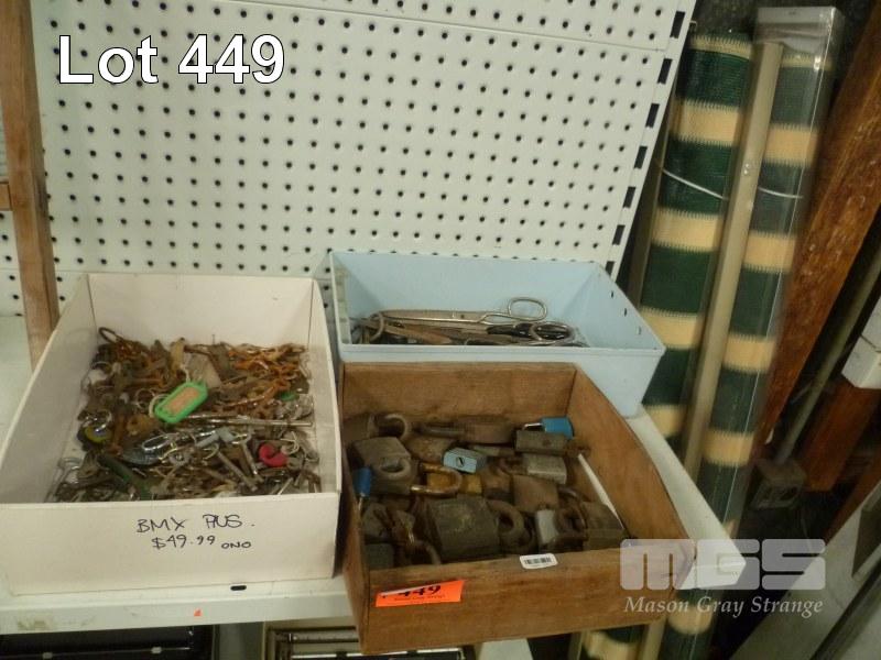 3 X TUBS, KEYS, PADLOCKS & SCISSORS