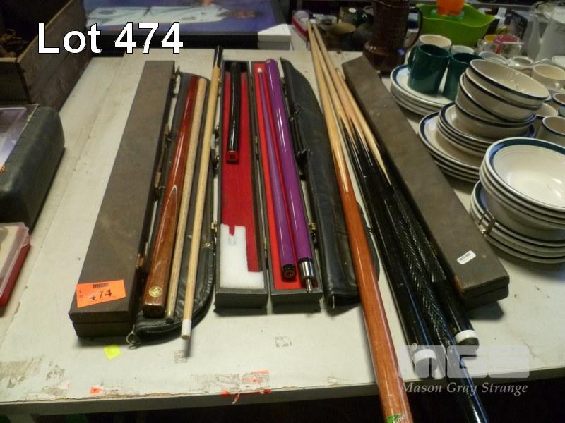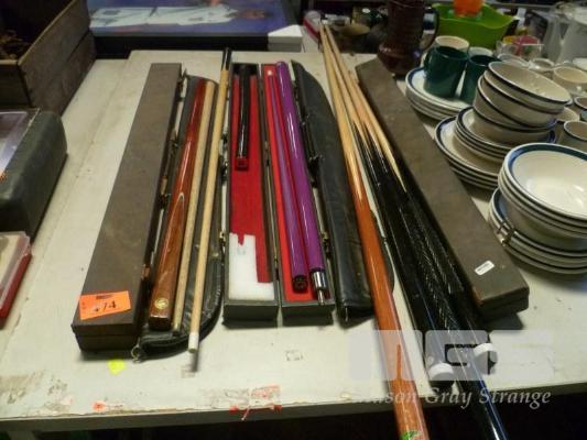 2 PIECE & ASSORTED BILLIARD CUES x 8