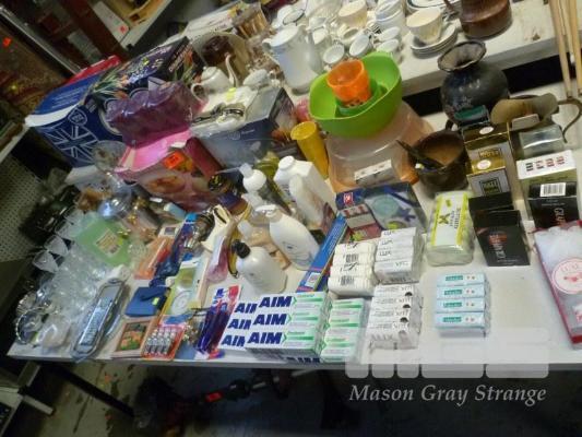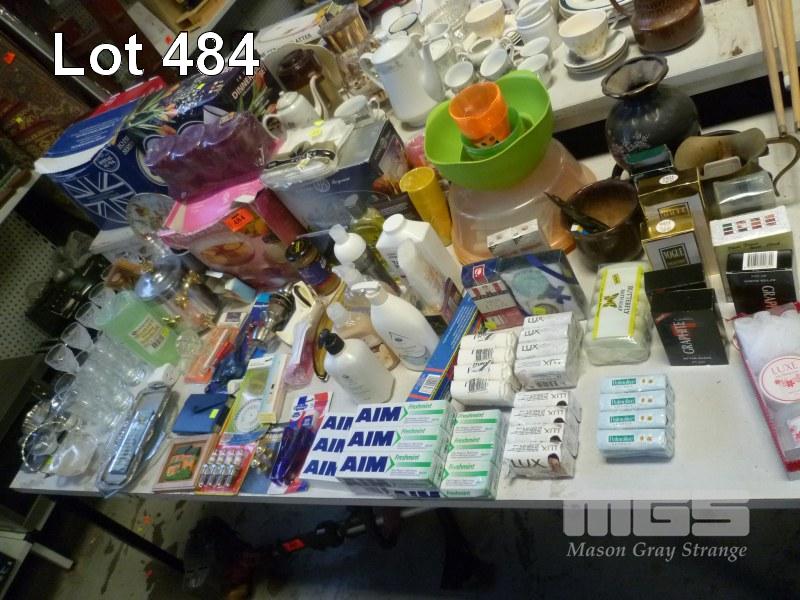 ASSORTED GLASSWARE, TOILETRIES, ETC, 1 x TABLE