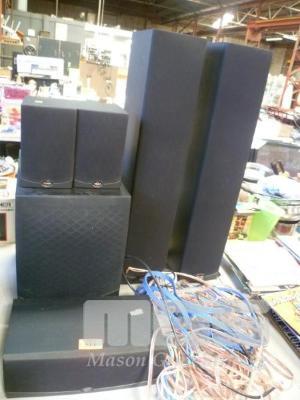 SET OF 5.1 KLIPSCH SURROUND SOUND SPEAKERS WITH SUB WOOFER & CABLES