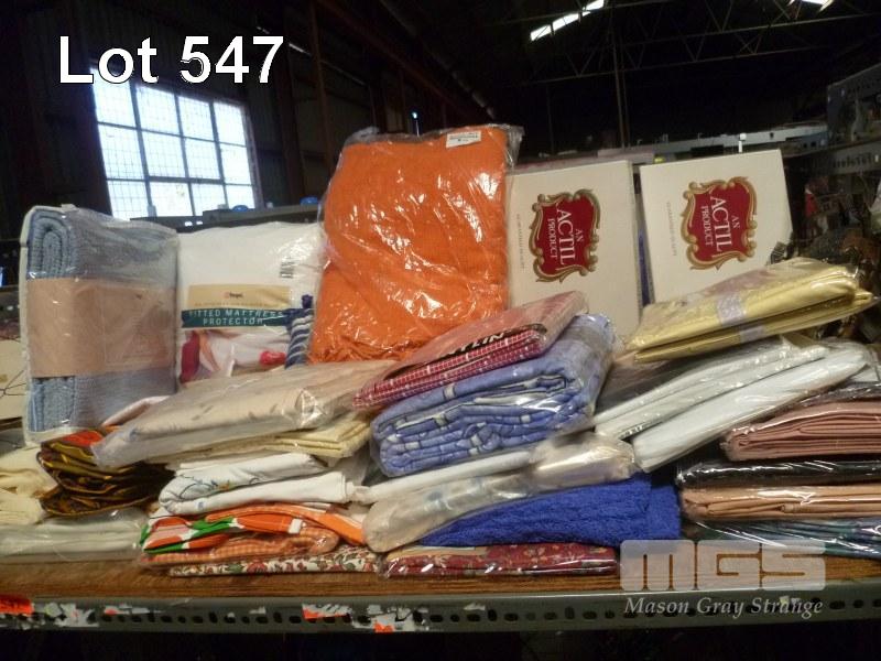 ASSORTED BEDDING, SHEET SETS, TABLE CLOTHS, ETC.