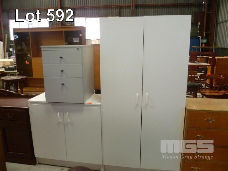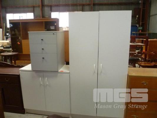 2 DOOR CABINET & GREY MELAMINE DRAWER UNIT