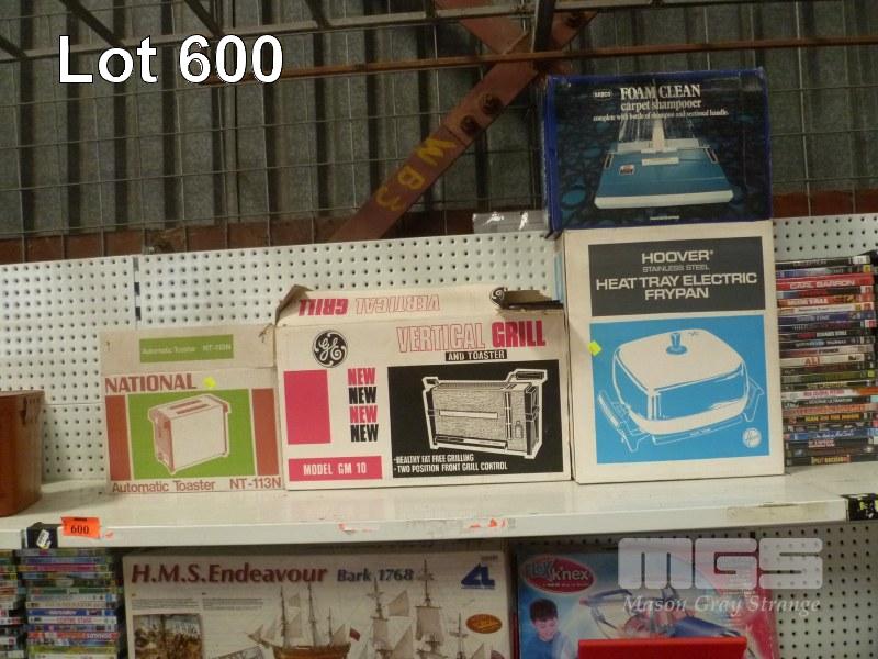 RETRO KITCHEN APPLIANCES, INCL GE VERTICAL GRILL, HOOVER ELECTRIC FRYPAN & NATIONAL AUTOMATIC TOASTER
