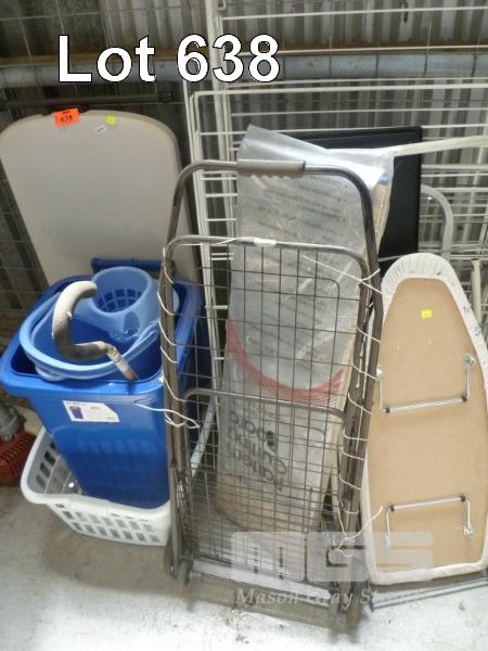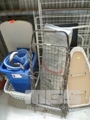 CLOTHES AIRERS, SHOPPING TROLLEY, LAUNDRY BASKET, IRONING BOARD ETC