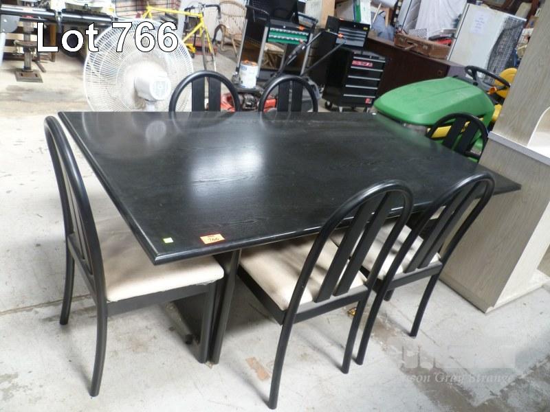 DINING SUITE, BLACK TIMBER, 7 PIECE
