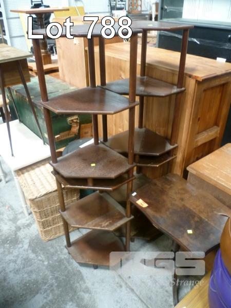 SET OF 4 CORNER WHATNOTS & OCCASIONAL TABLE
