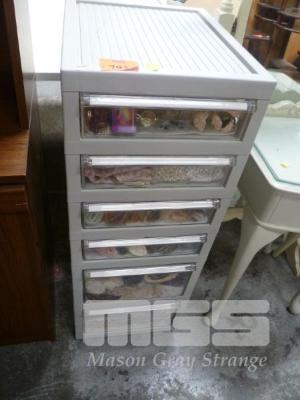 MOBILE DRAWER UNIT, WITH ASSORTED CRAFTING ITEMS
