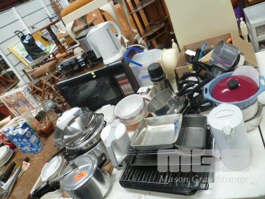 ASSORTED KITCHEN APPLIANCES, COOKWARE, UTENSILS, ETC. (1 x TABLE)