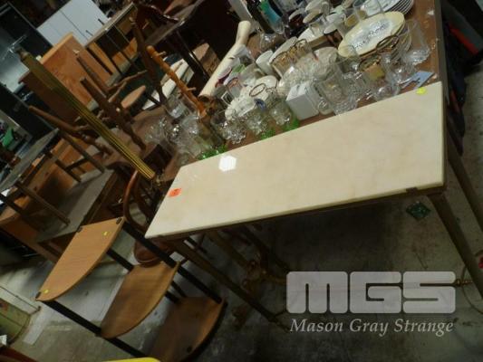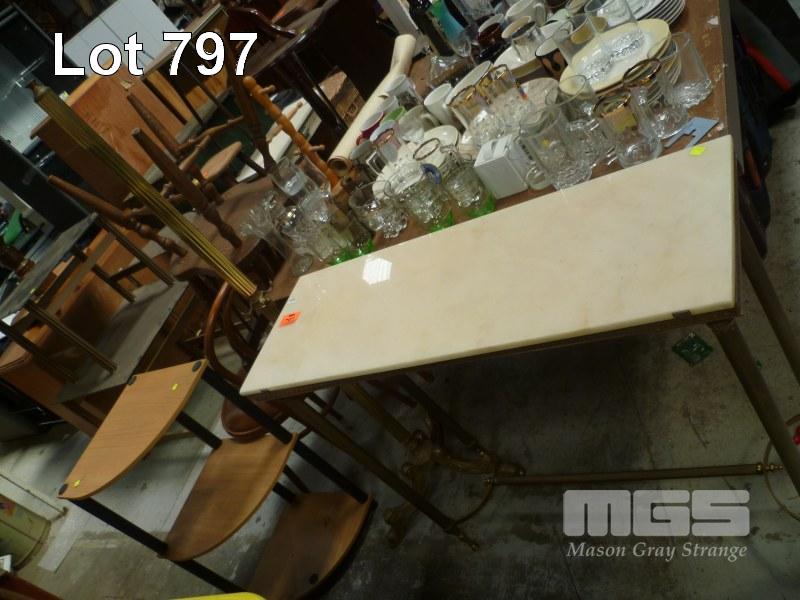HALL TABLE, BRASS FRAME, ALABASTER TOP WITH BRASS COAT STAND (TOP MISSING)