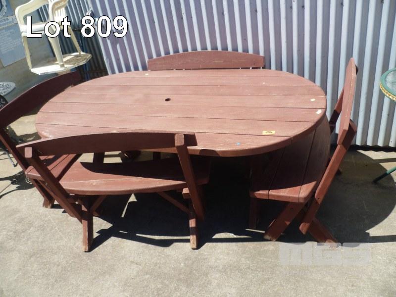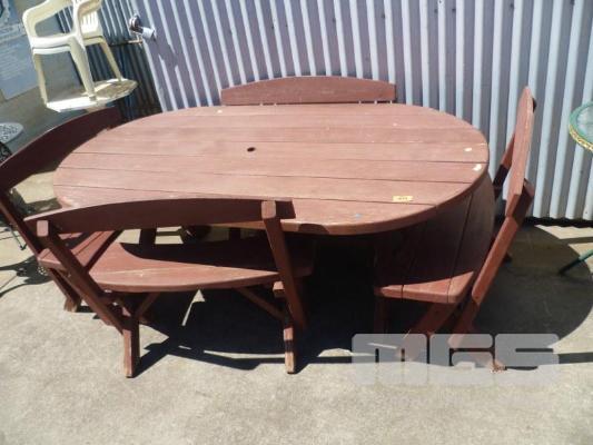 OUTDOOR SETTING, PINE, 5 PIECE OVAL TABLE & 4 x BENCH SEATS