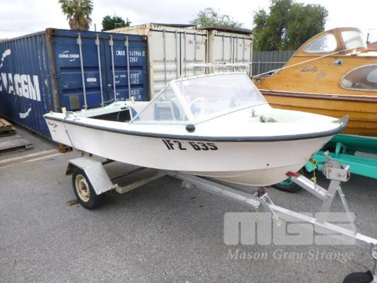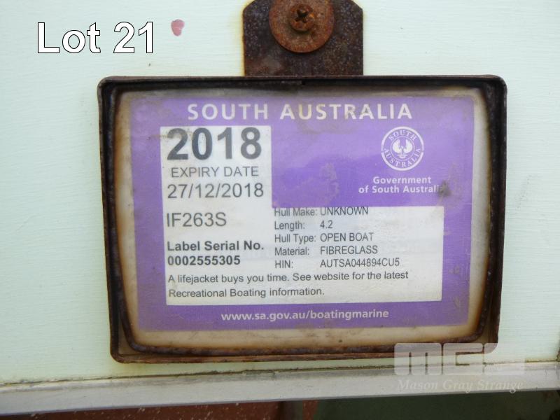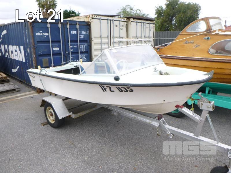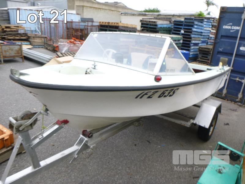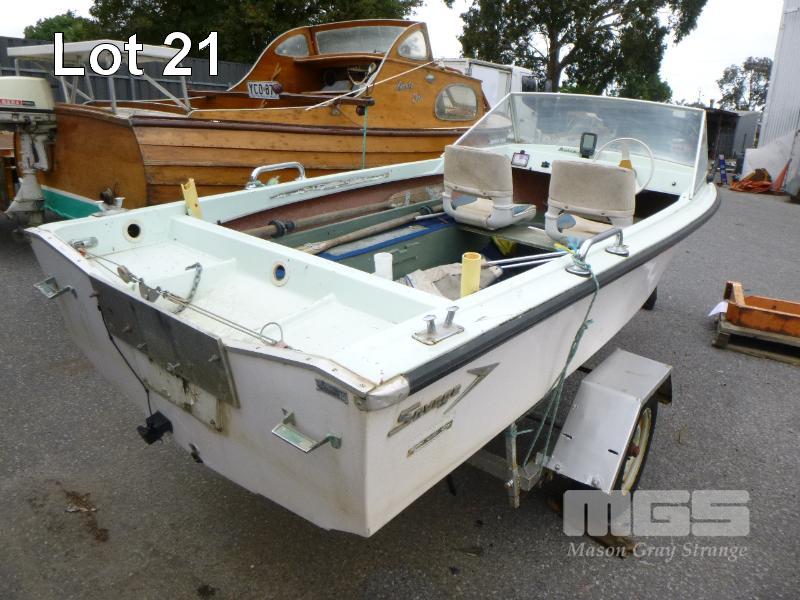 14' RUNABOUT SAVAGE, AVALON REG: IF263S HIN: AUTSA044894CU5 SPRAY DODGER, BIMINI GARMIN ECHO 101 SOUNDER, ANCHOR FIRE EXTINGUISHER WITH PAPERS FOR BOAT (NO MOTOR) WITH SINGLE AXLE BOAT TRAILER, HOMEMADE NO REG RUST EVIDENT