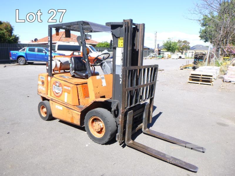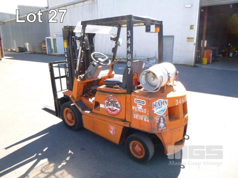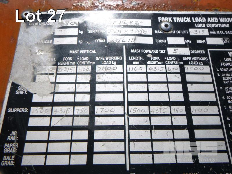 YALE GP25PE FORKLIFT HOURS: 8,871hours 4 CYLINDER, DUAL FUEL, S/NO: JUAE2030 2 TONNE CAPACITY 4,315mm MAX HEIGHT 3 STAGE CONTAINER MAST SIDE SHIFT SOLID TYRES KEY #5 (NO PAPERS, NO OWNER'S MANUAL, NO SERVICE BOOKS)
