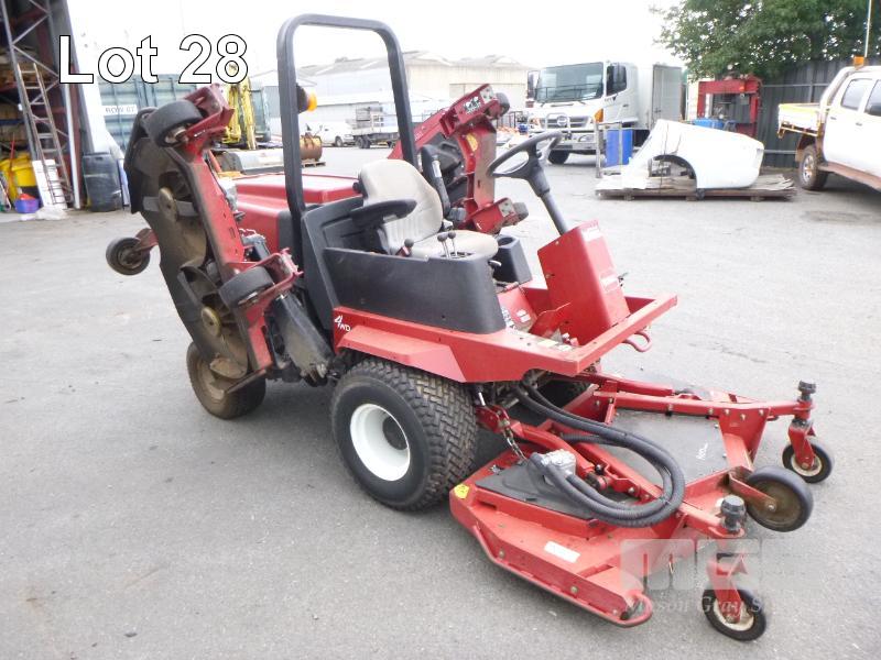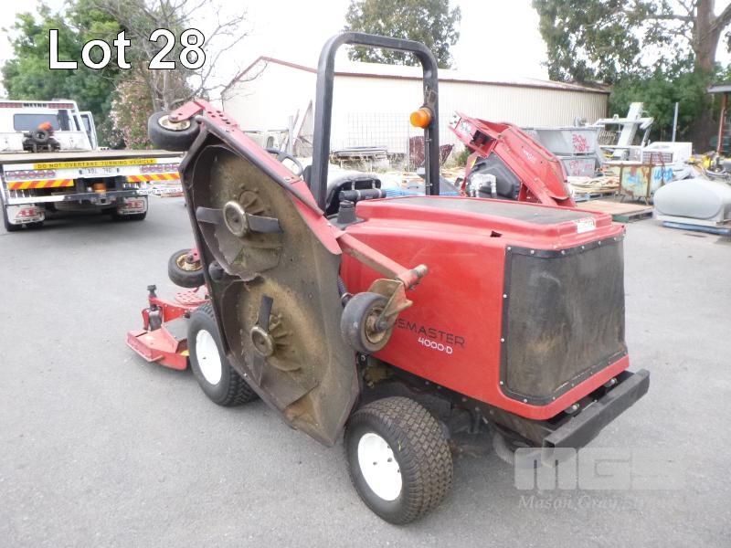 LARGE AREA ROTARY MOWER, 4WD TORO GROUNDMASTER MOD: 4000-D HOURS: 1623 INDICATED PARALLEL HYDROSTATIC BI-DIRECTIONAL 4WD 3 DECK : 1600mm CENTRE 2 x 1100mm WINGS MOW A O UNCUT CIRCLE KUBOTA V2403-T DIESEL ENGINE ROPS BAR KEY #37