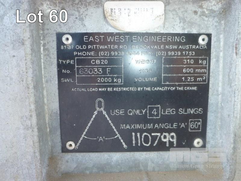 GALV LIFTING BIN, EAST WEST ENGINEERING TYPE: CB20 1.25m3, SWL: 2,000kg 6 x LIFTING LUGS, FORK POCKETS