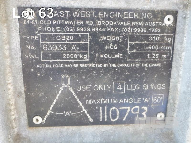 GALV LIFTING BIN, EAST WEST ENGINEERING TYPE: CB20 1.25m3, SWL: 2,000kg 6 x LIFTING LUGS, FORK POCKETS
