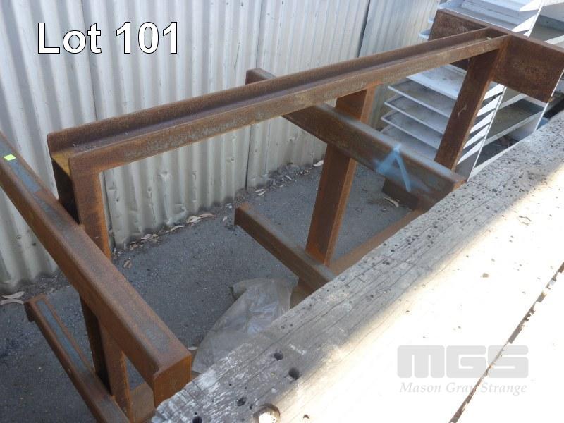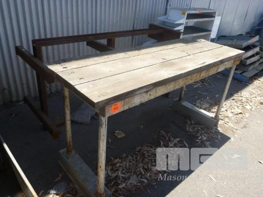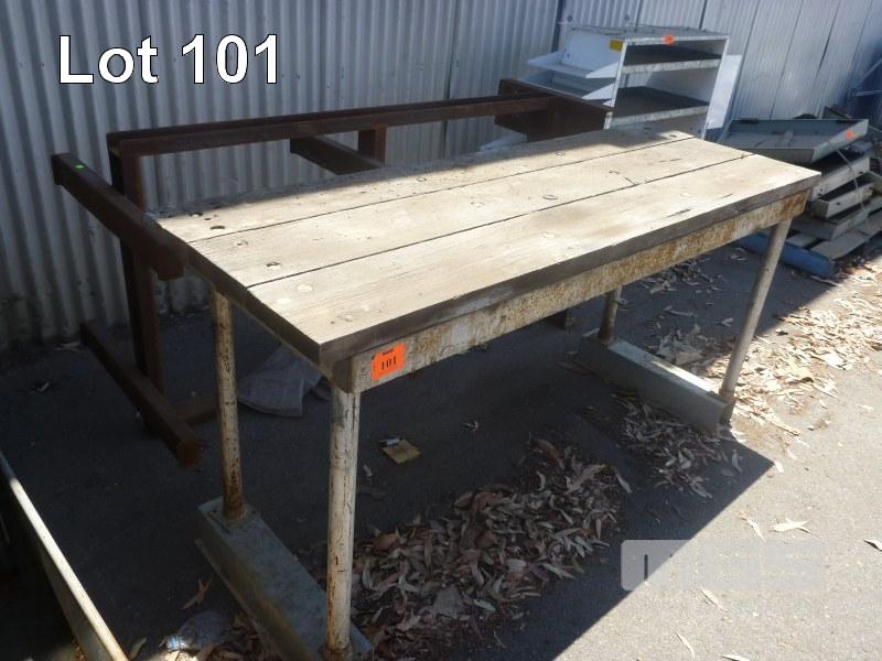 TIMBER TOPPED STEEL FRAME BENCH, 195 x 70cm WITH SEEL STOCK RACK