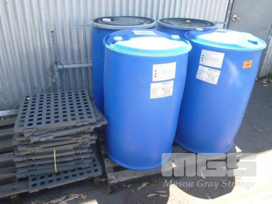 4 x ASSORTED POLY DRUMS, 200 LITRE & 15 x PLASTIC MATS